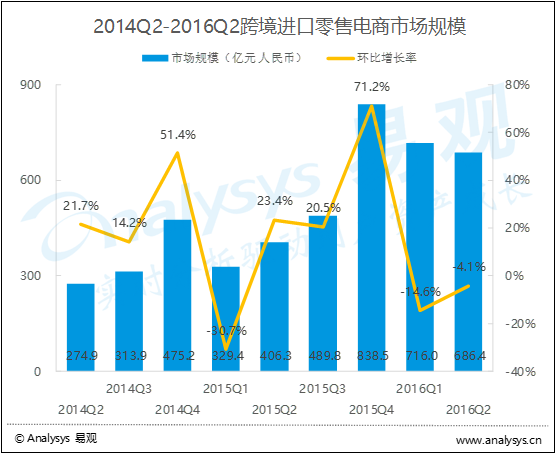 • 2016年第2季度中國跨境進口零售電商市場規模統計分析