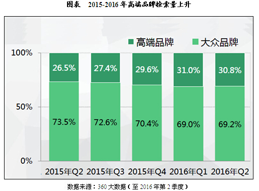 據(jù)市場(chǎng)調(diào)查公司了解,2015年2季度開始,高端品牌的檢索量占比逐漸擴(kuò)大,消費(fèi)者對(duì)高端品牌的消費(fèi)需求更加旺盛。 2016年,高端品牌,品牌數(shù)量少集中度高,Top10品牌檢索量占比近60.0%,其中雅詩(shī)...