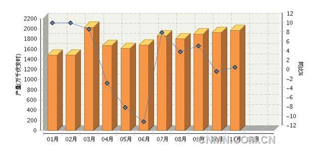 2016年1~11月我國(guó)鉛酸蓄電池產(chǎn)量