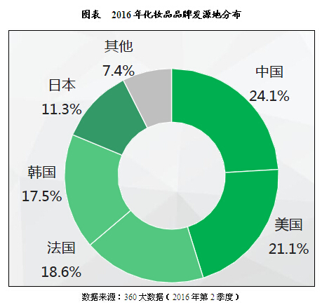 化妝品品牌發源地集中度高,中美法和日韓五個國家的品牌檢索量占比超90.0%