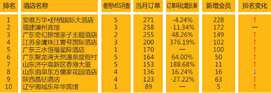 注:新秀酒店是指使用MSS系統(tǒng)6個(gè)月內(nèi)的酒店,排名依據(jù)為當(dāng)月訂單量
