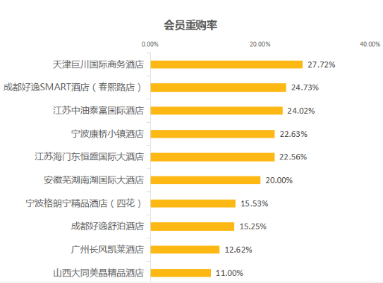 注:重購(gòu)率=消費(fèi)酒店項(xiàng)目2次及2次以上的會(huì)員數(shù)/總會(huì)員數(shù)